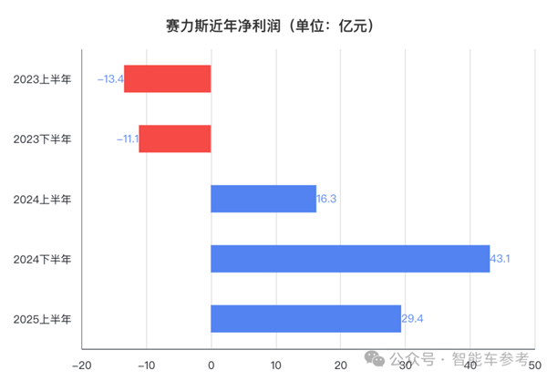财报夸耀,赛力斯2025年上半年的归母净利润为29.41亿元,同比剧增81.03%,是理思汽车同期的1.68倍。